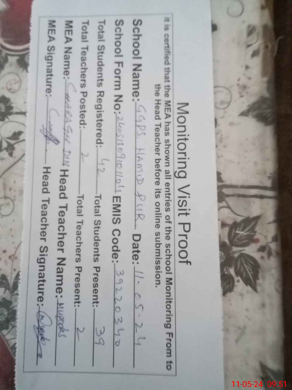 | EMIS Code: 39220340 | Name of School: GGPS HAMID PUR | |||