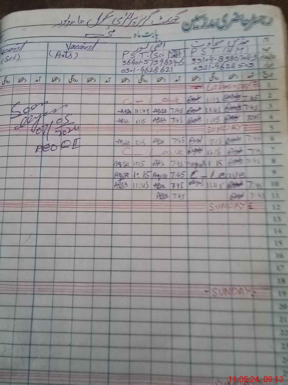 | Name: MU**** SA**** Designation: (School Headmaster's/Headmistress's) PST Phone/Cell Number: 03**** |