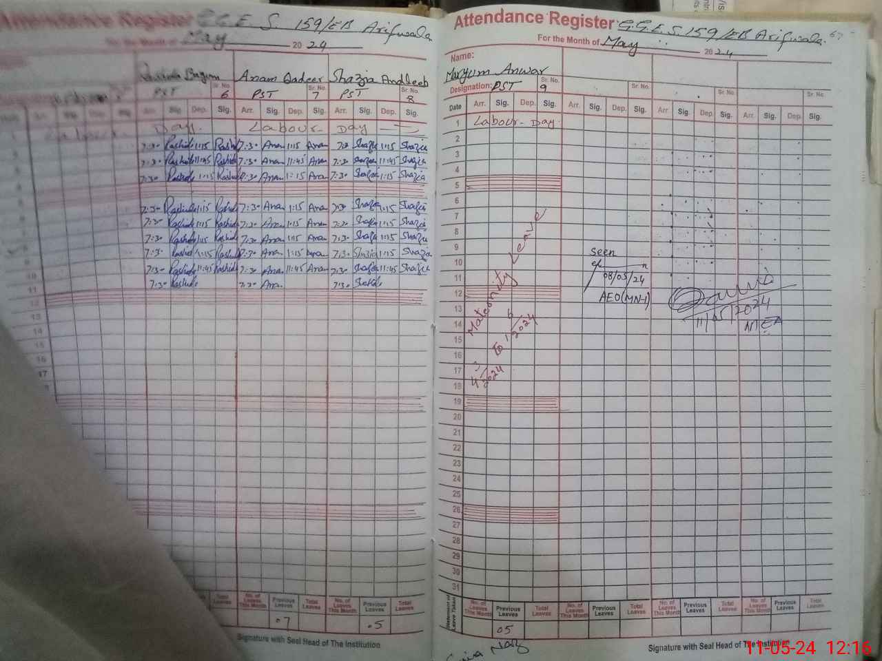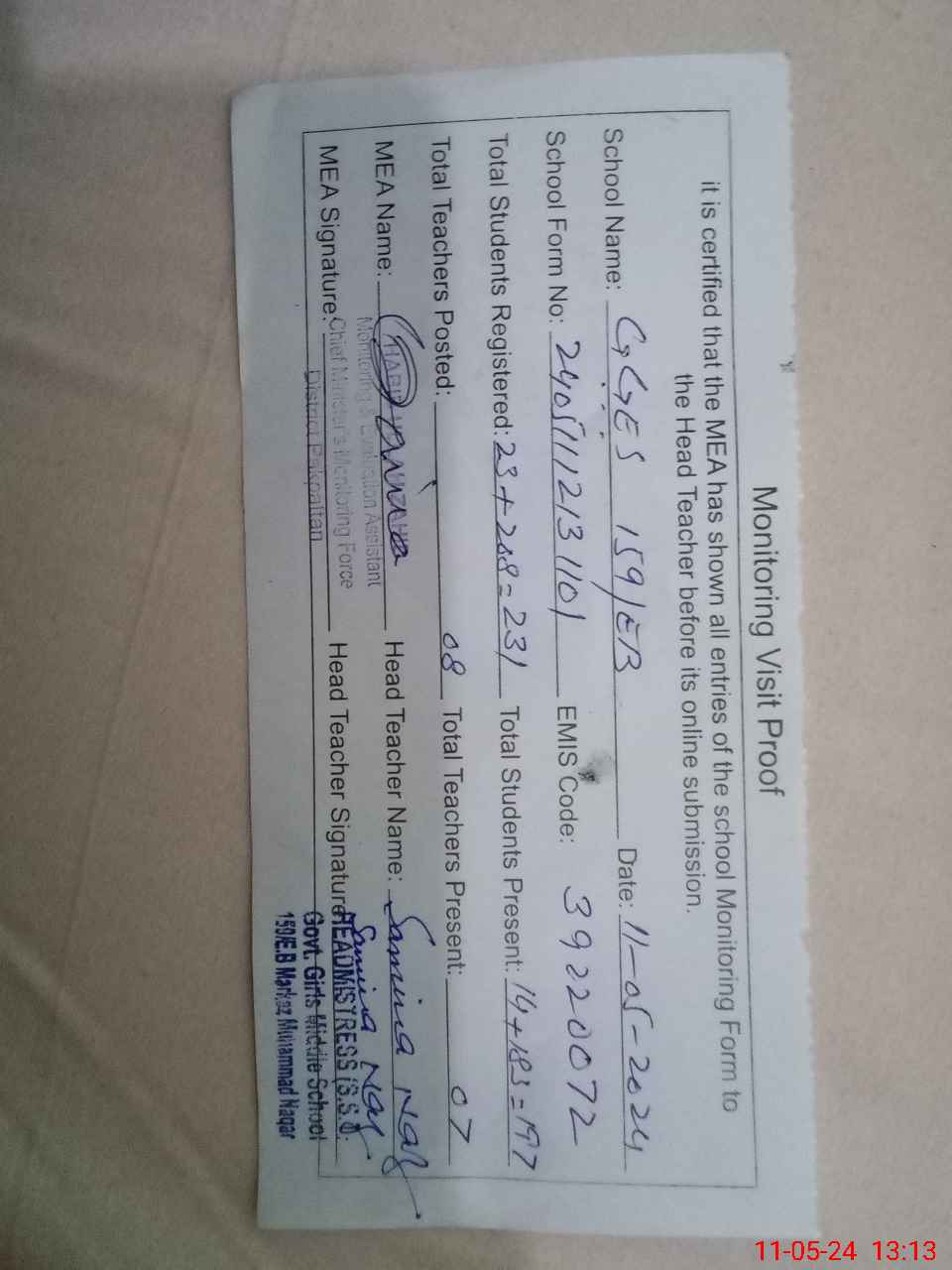 | Certified that this School was Inspected by the Undersigned MEA/DMO Today and the Information Stated Above is as Per Record. | |||||