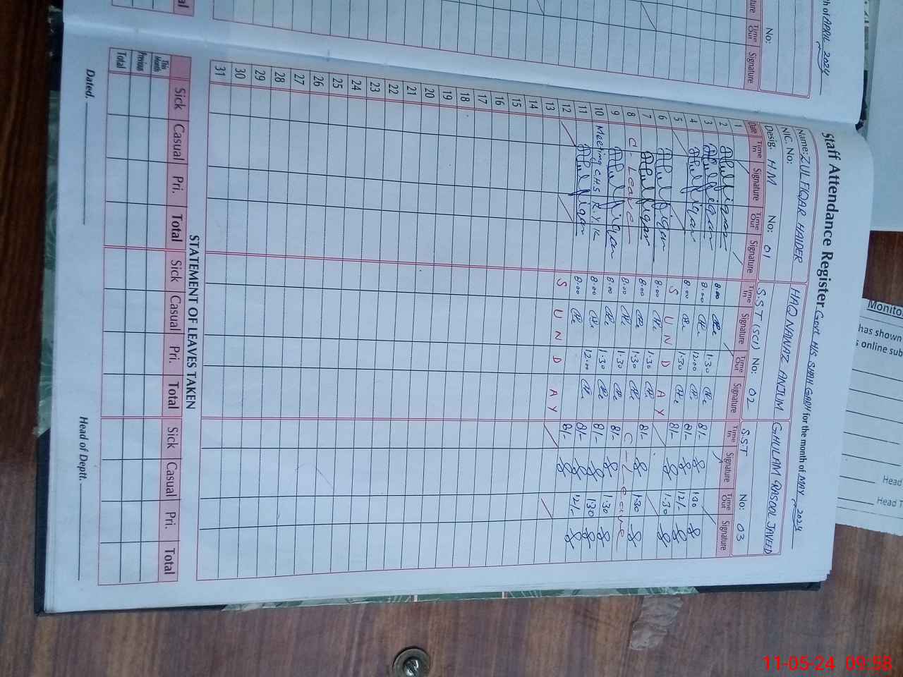 | 31**** | Mu**** Kh**** | PST | Regular | 2 | 0 | 0 | 0 | 0 | 0 | 0 | 0 | 2 | Casual |