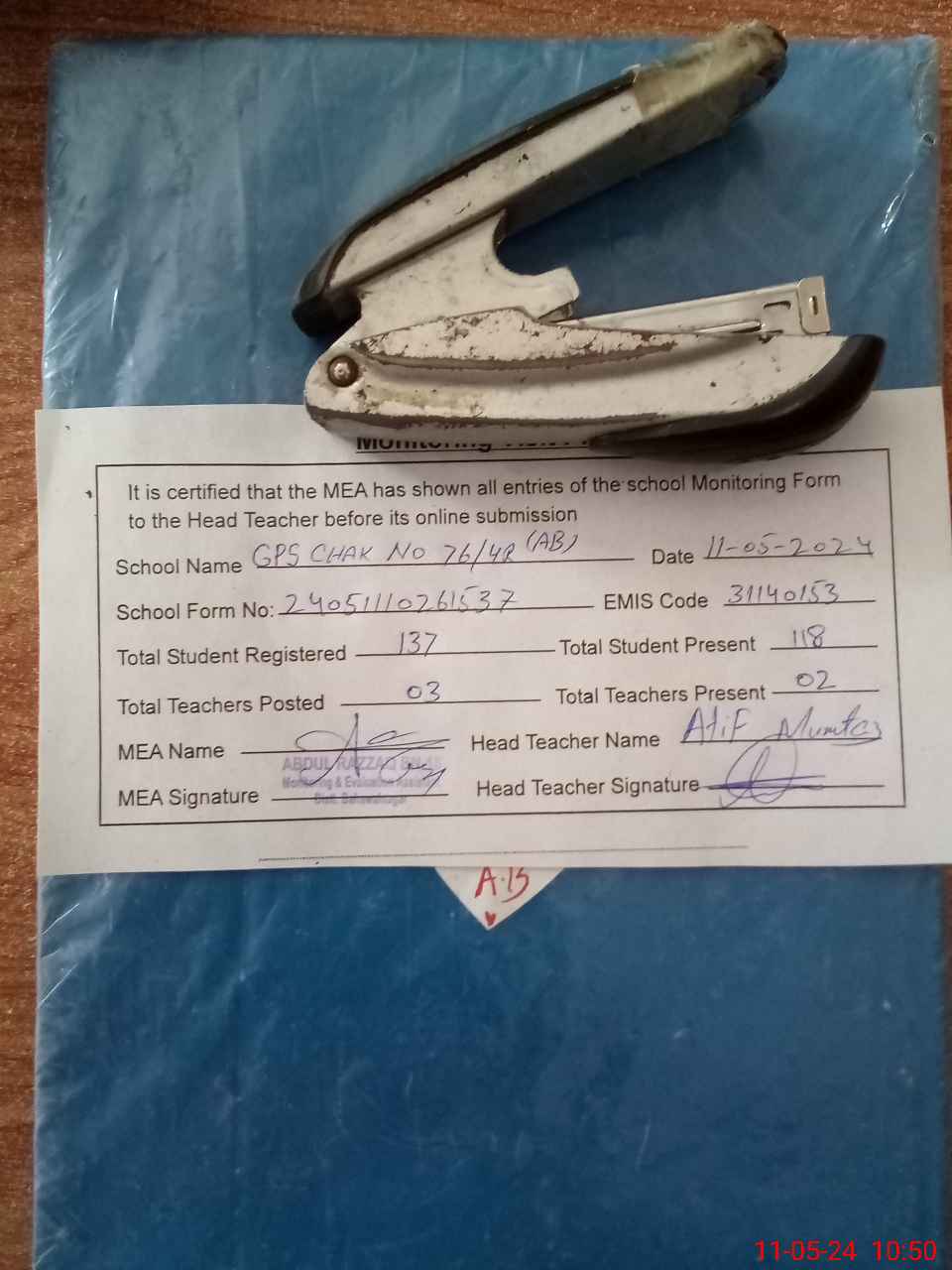 | Attendance Register | Head Teacher | MEA with School | Visit Proof |