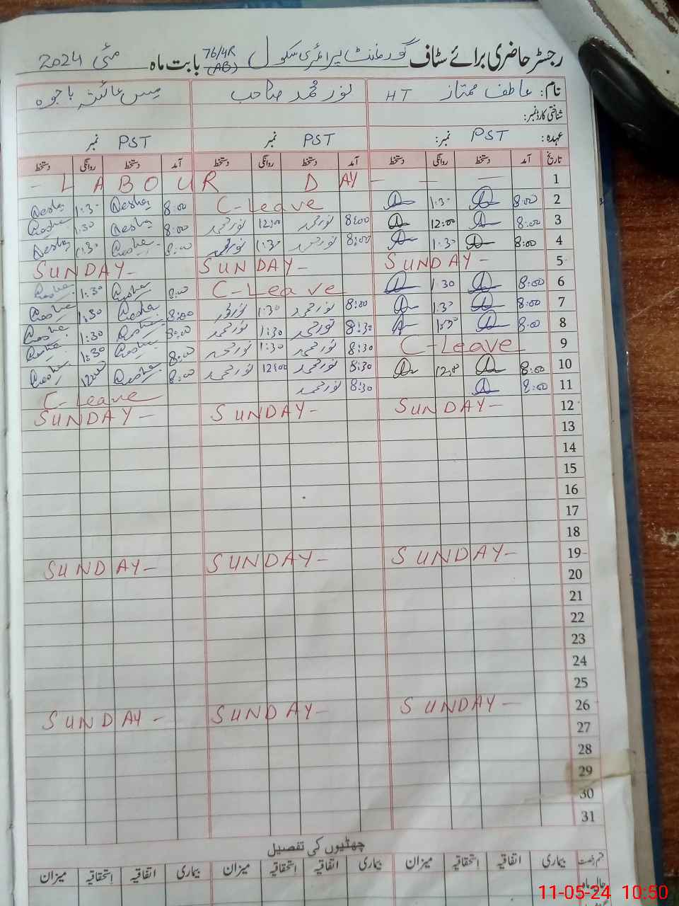 | CNIC | Full Name | Designation | R/C | Absence During Last Calender Month |