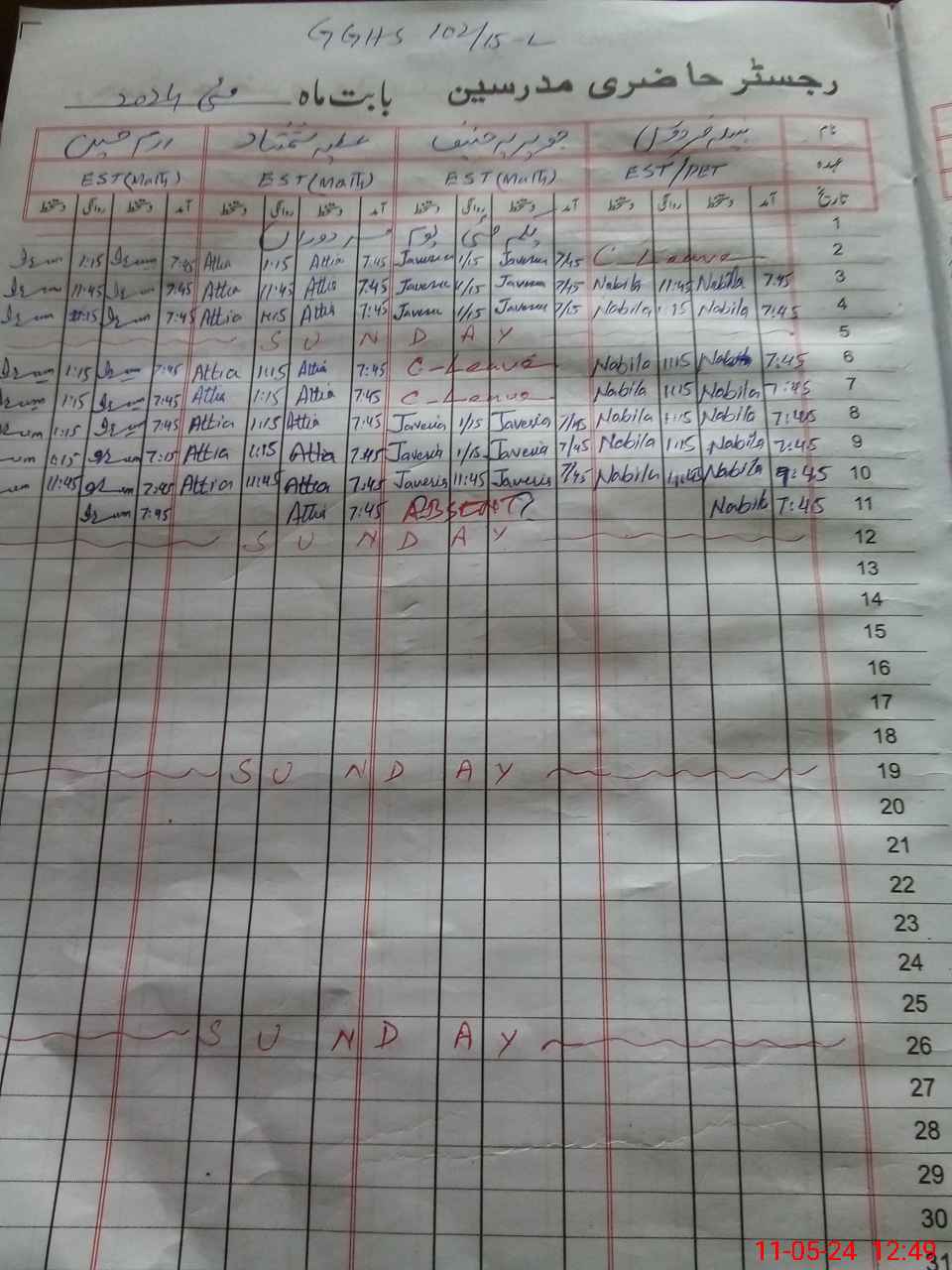 | 36**** | Ha**** Fa**** Ya**** | Contract | 0 | 6 | 0 | 0 | 0 | 0 | 0 | 0 | 0 | Exam Duty | |