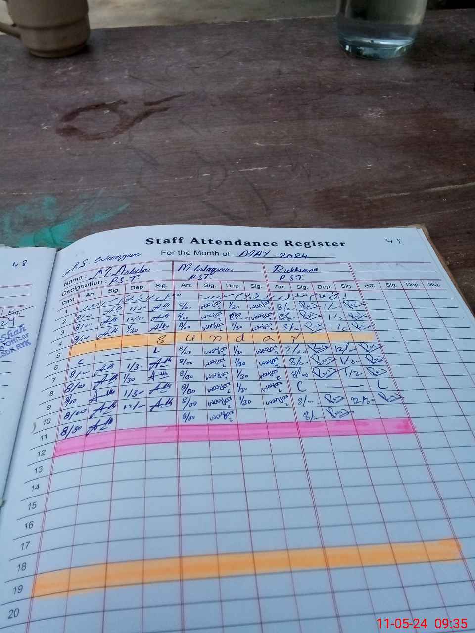 | CNIC | Full Name | Designation | R/C | Absence during last cal. month |