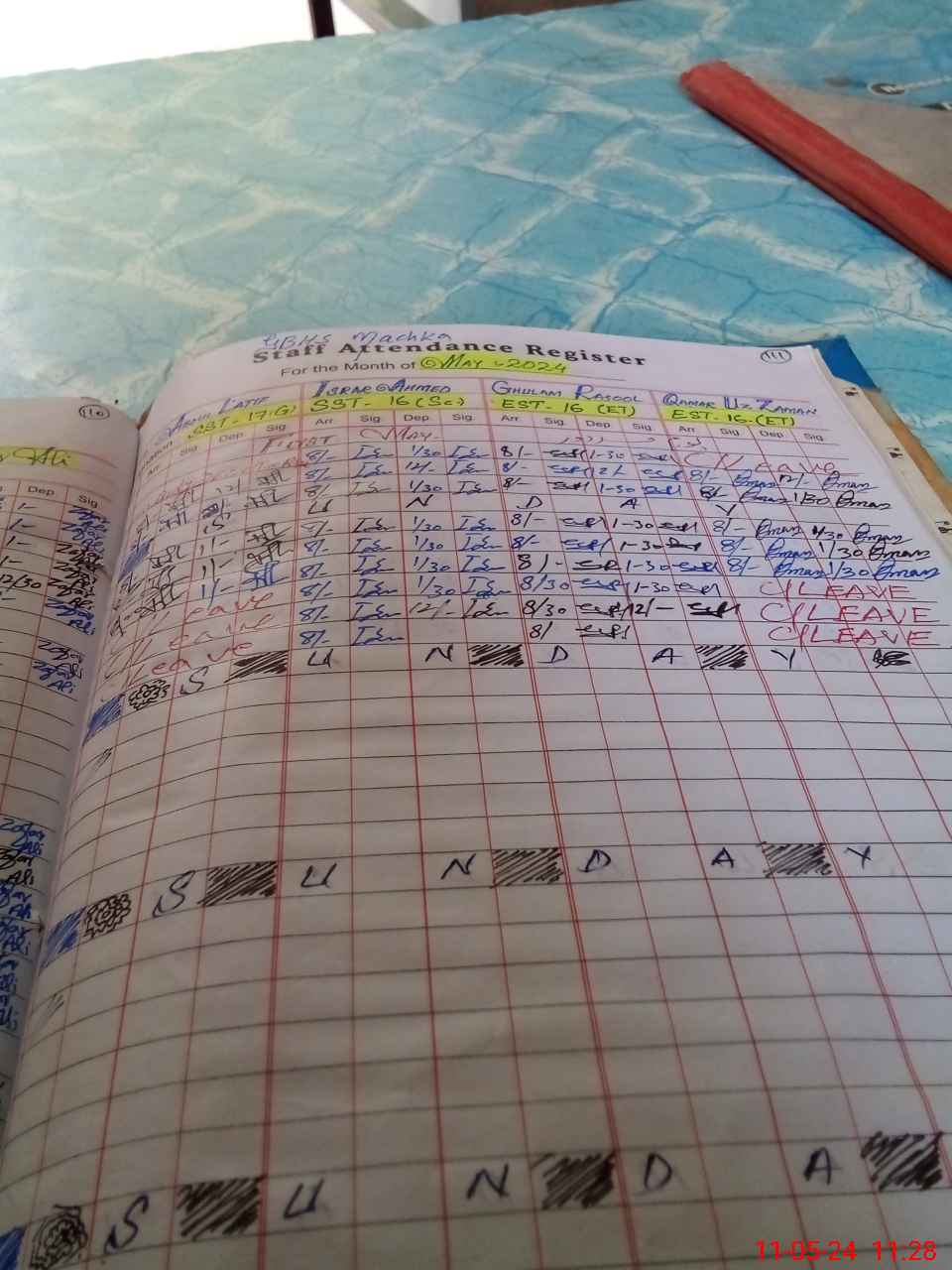 | Leave | Duty | Absent | Maternity | Medical | Ex- Pak |