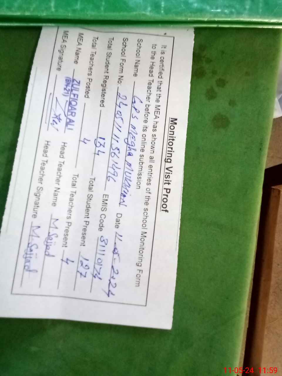 | EMIS Code: 31110174 | Name of School: GPS MEGHA MUKHIAN | |||