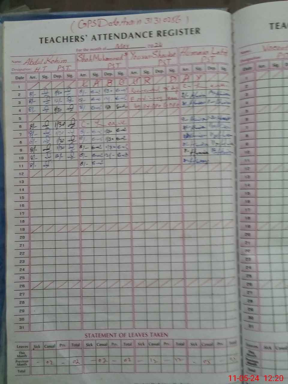 | 31**** | Yo**** Sh**** | 1 | 0 | 0 | 30 | 0 | 0 | 0 | 0 | 0 | 0 | Absent (Un-Authorized) | |