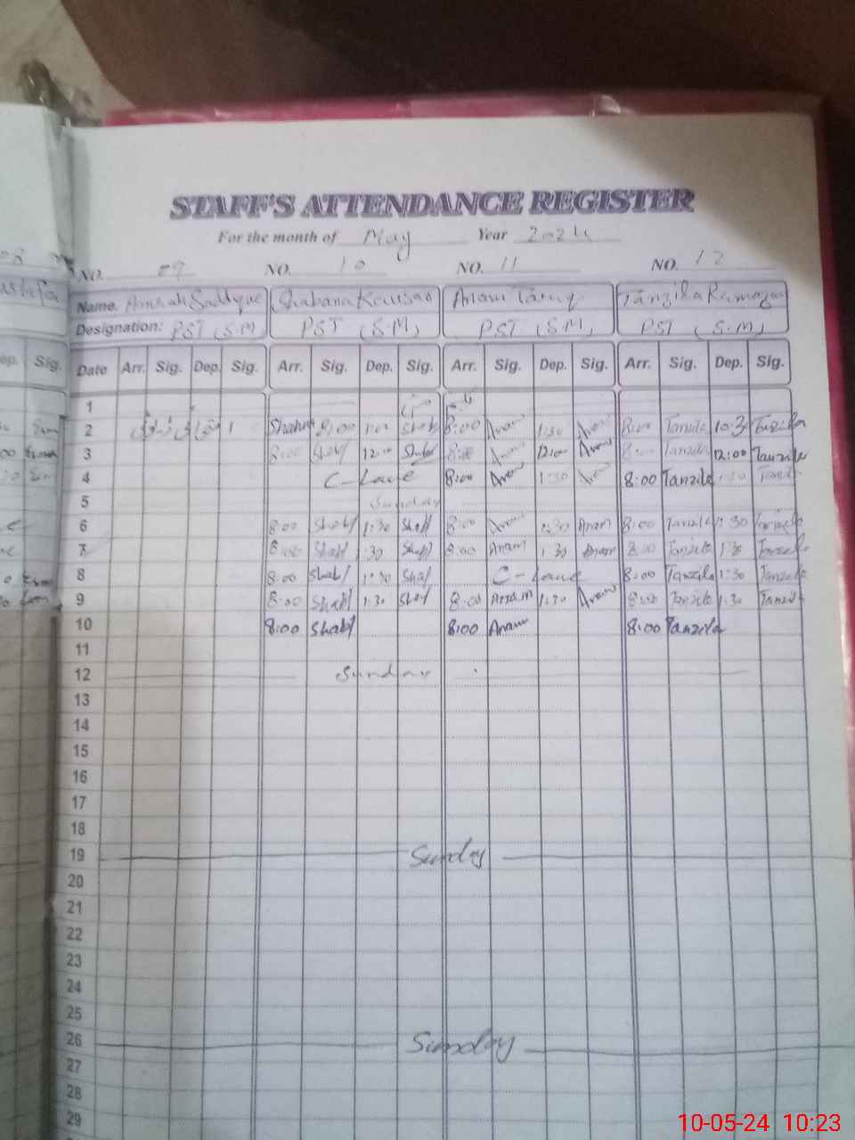 | CNIC | Full Name | Designation | R/C | Absence During Last Calender Month |