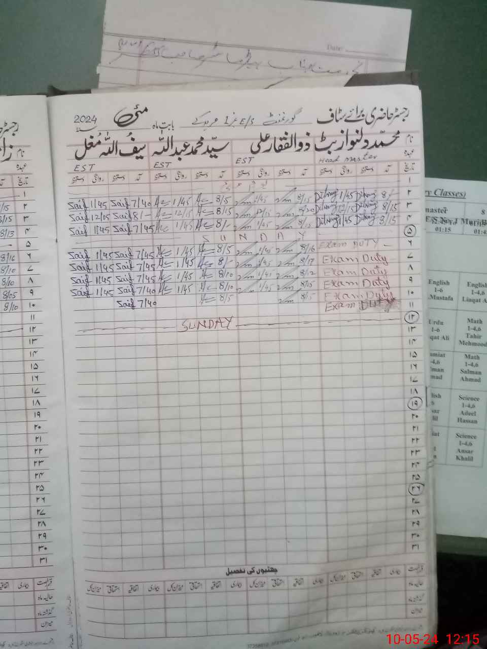 | 35**** | An**** Kh**** | PST | Regular | 0 | 1 | 0 | 0 | 0 | 0 | 0 | 0 | 0 | Exam Duty |