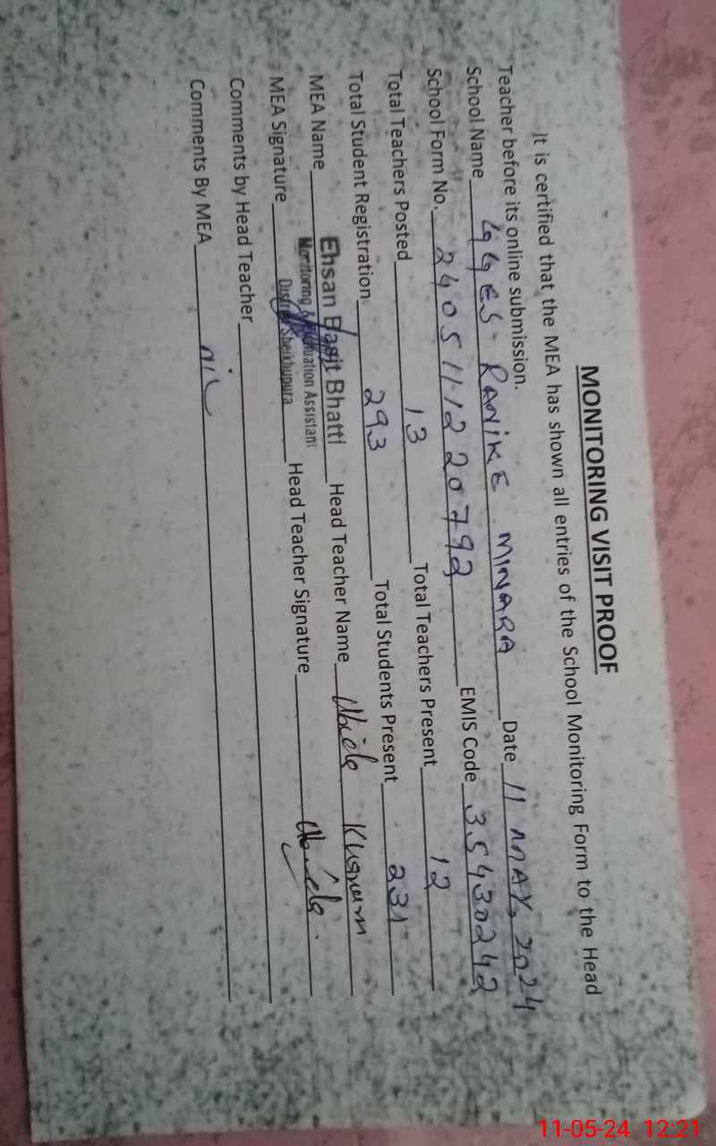 | EMIS Code: 35430242 | Name of School: GGES RANIKE MINARA | |||