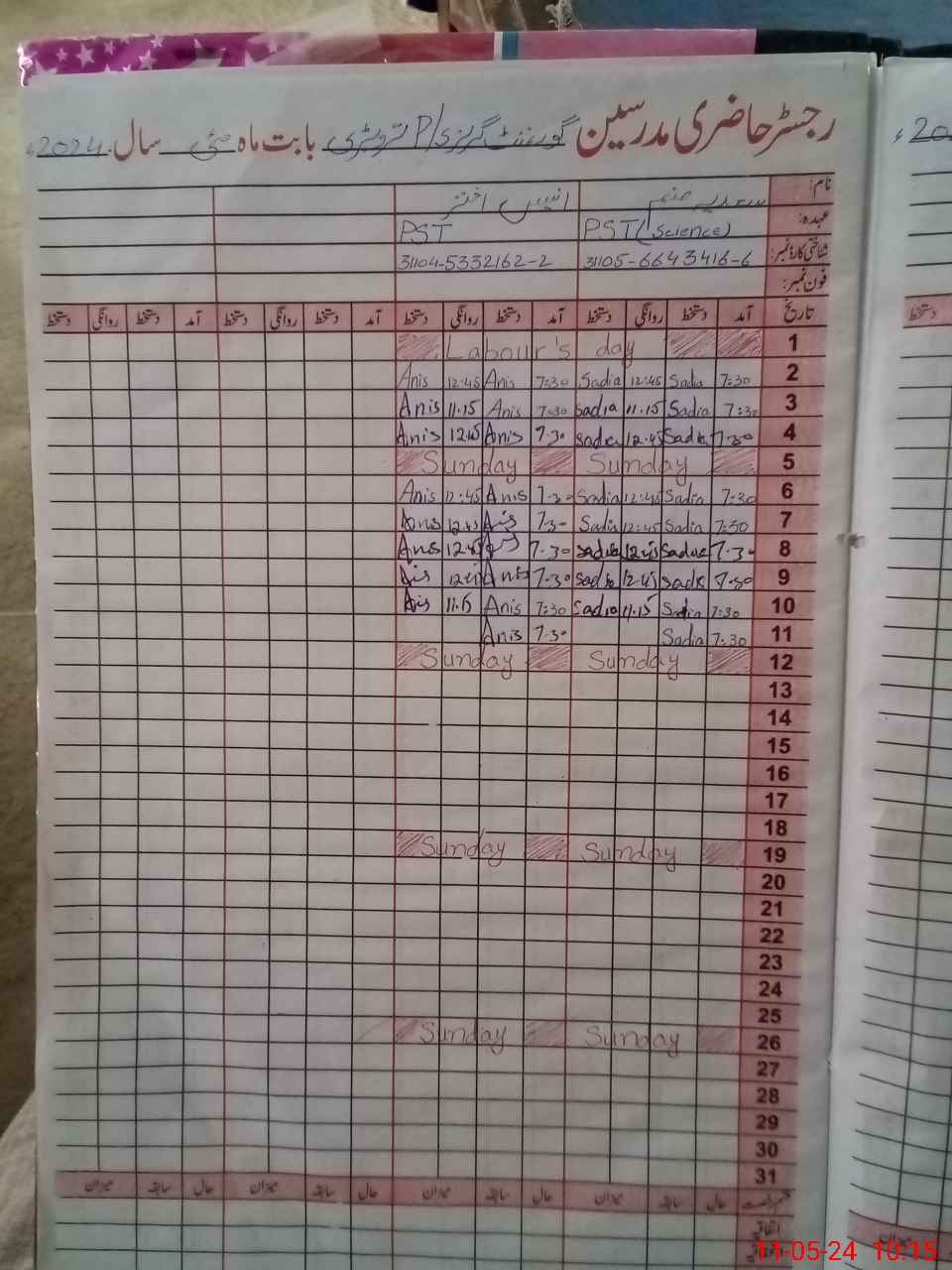 | Name: AN**** Ak**** Designation: (School Headmaster's/Headmistress's) PST Phone/Cell Number: 03**** |