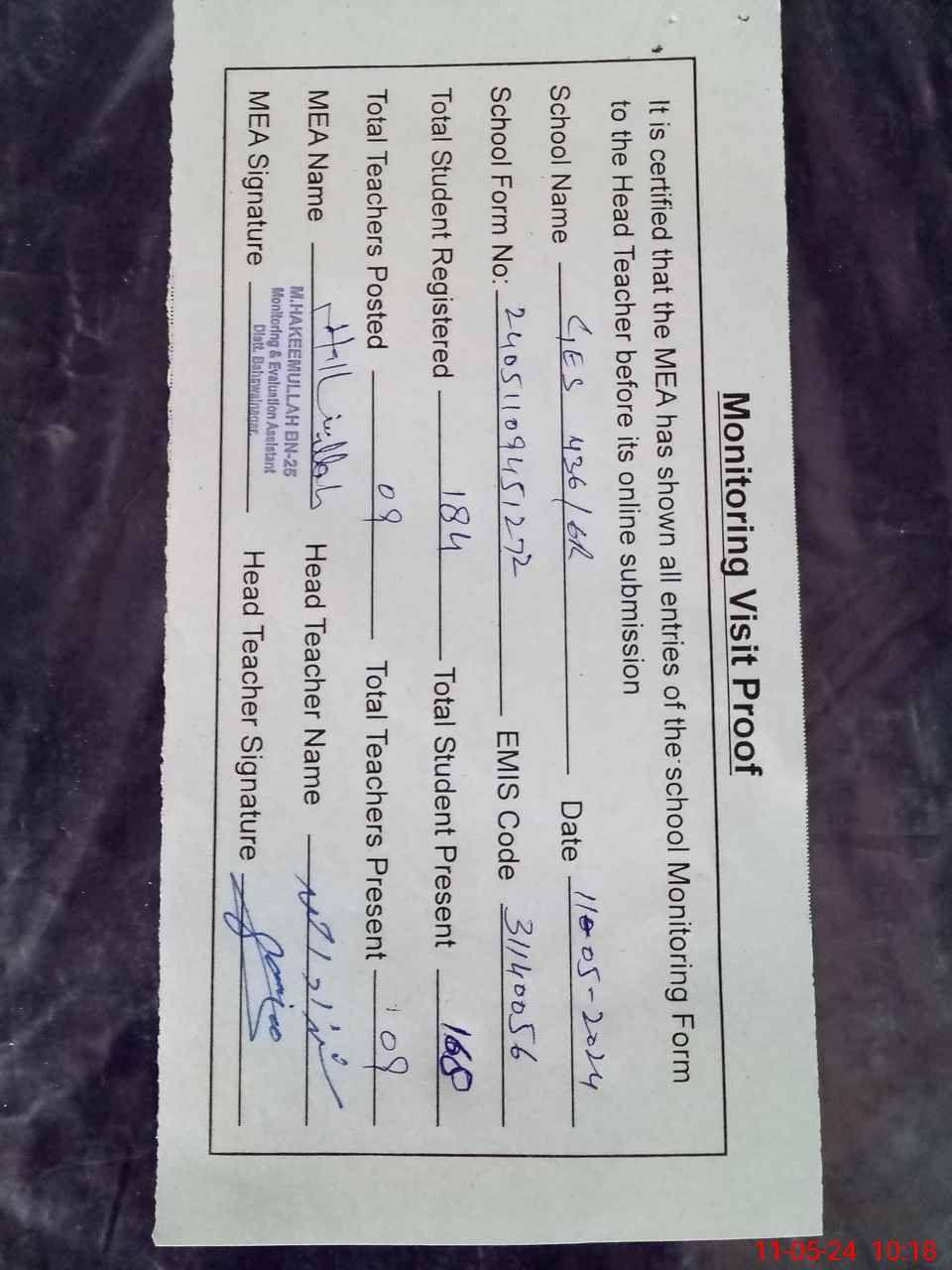 | EMIS Code: 31140056 | Name of School: GES CHAK NO. 436/6-R | |||
