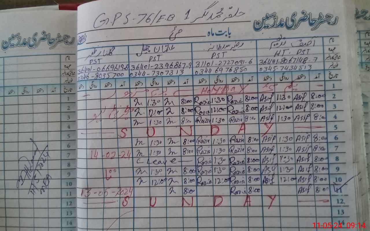 | Name: AS**** NA**** Designation: (School Headmaster's/Headmistress's) PST Phone/Cell Number: 03**** |