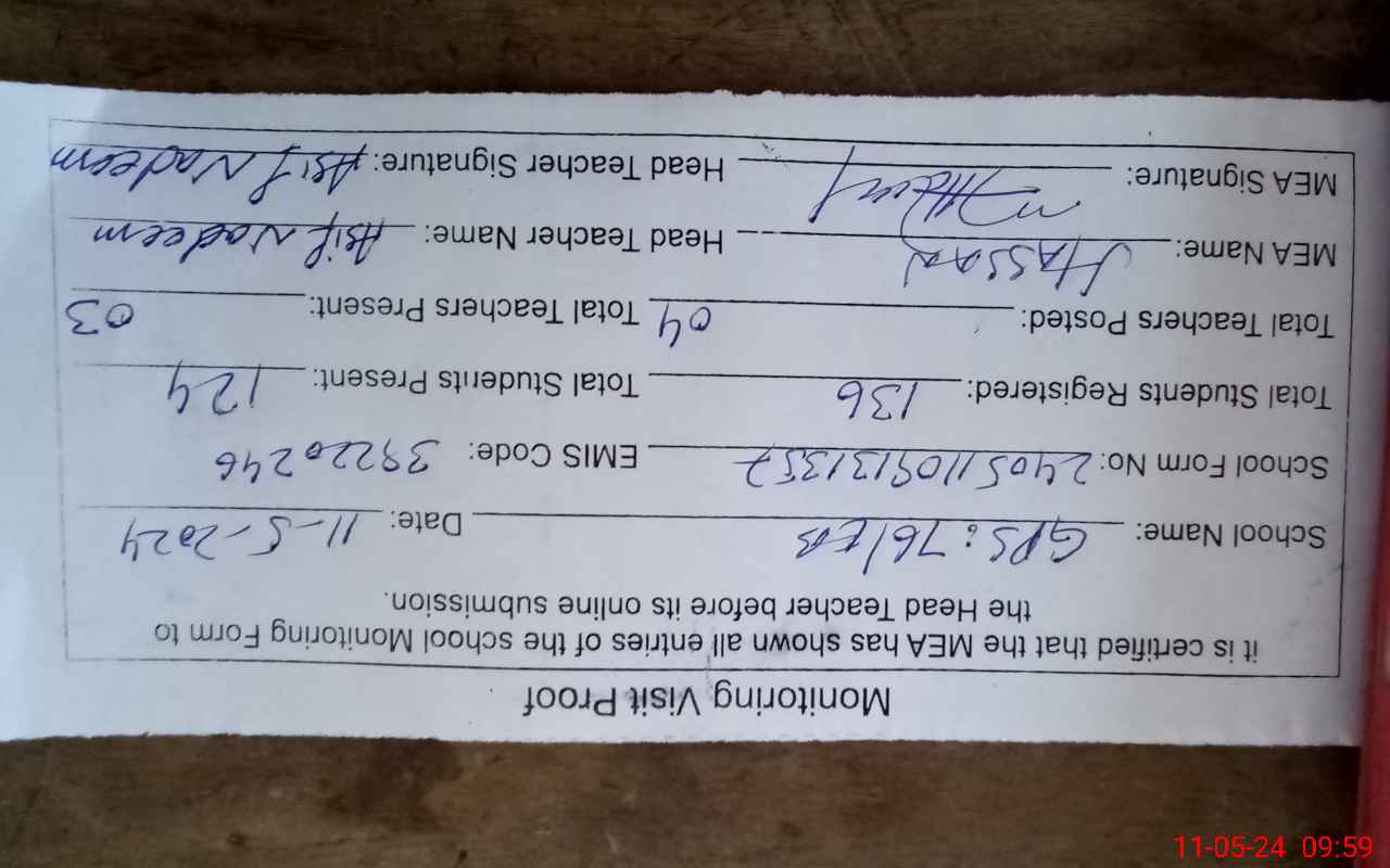 | EMIS Code: 39220246 | Name of School: GPS 76 EB | |||
