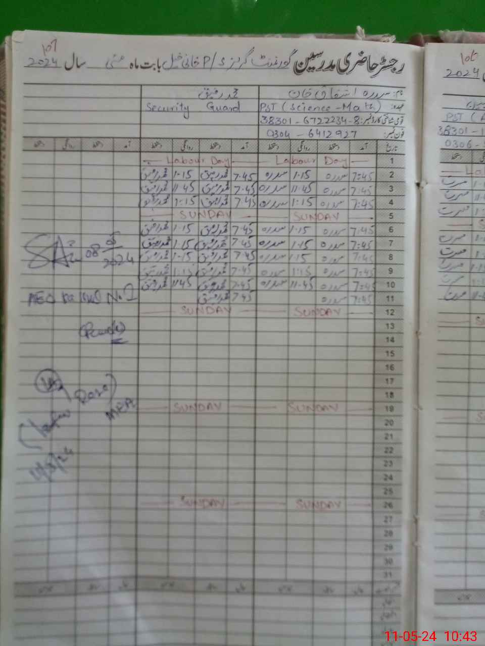 | CNIC | Full Name | Designation | R/C | Absence During Last Calender Month |