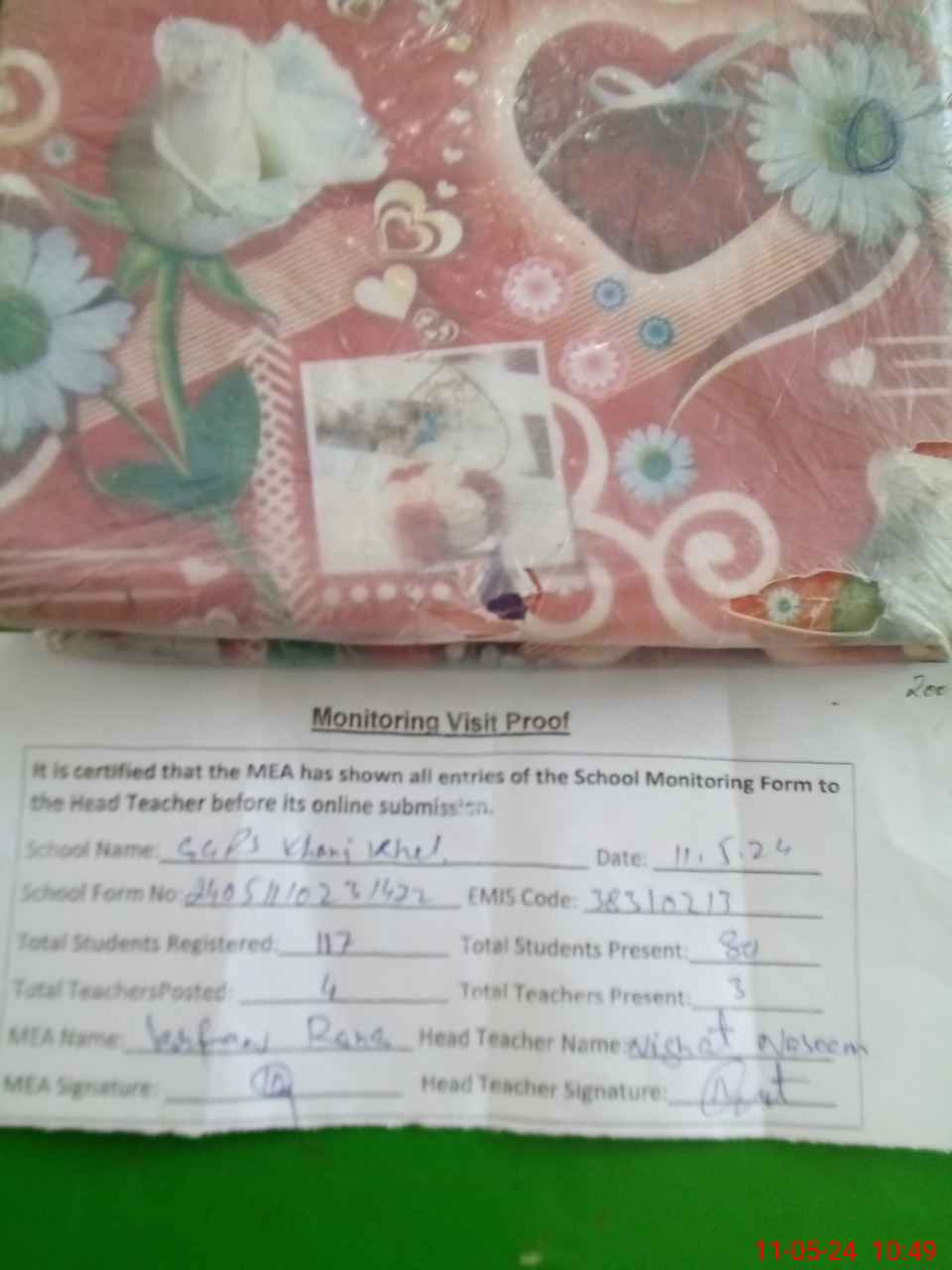 | Attendance Register | Head Teacher | MEA with School | Visit Proof |