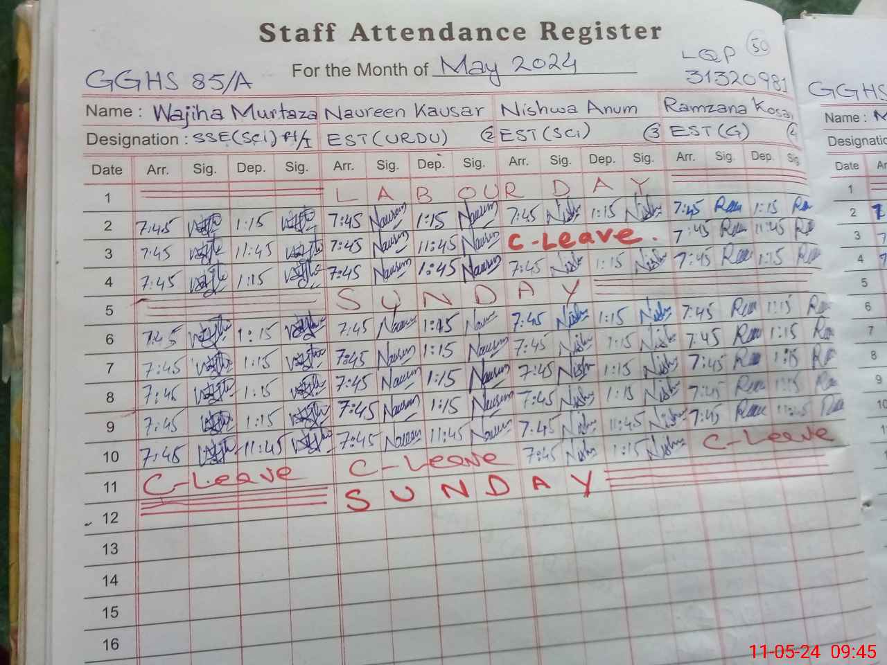 | 31**** | Hi**** Kh**** | 2 | 2 | 0 | 0 | 0 | 0 | 0 | 0 | 0 | 0 | 0 | Exam Duty |