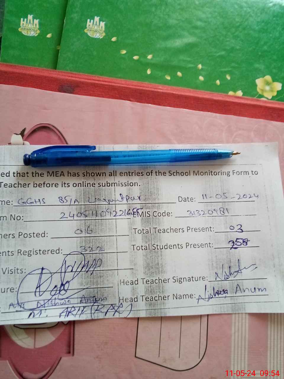 | EMIS Code: 31320981 | Name of School: GGHS 85/A | |||