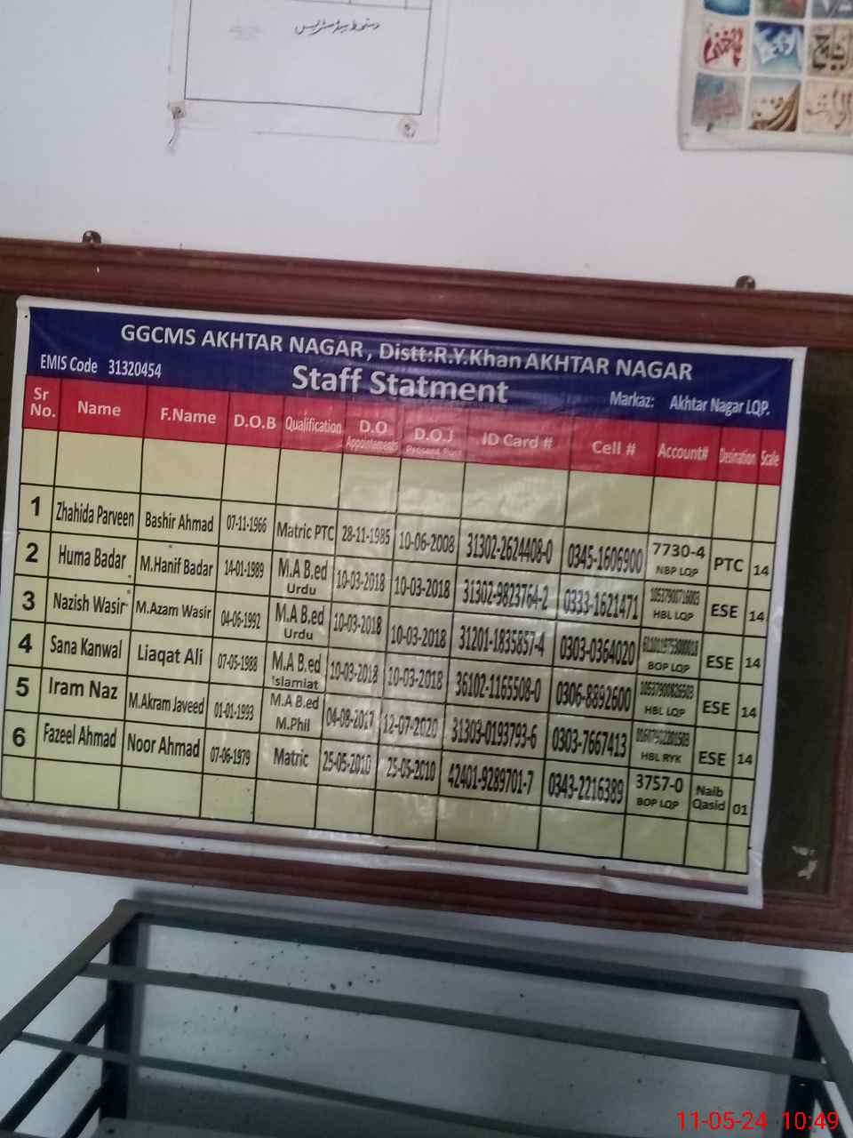 | EMIS Code: 31320454 | Name of School: GGCMS AKHTAR NAGAR | |||