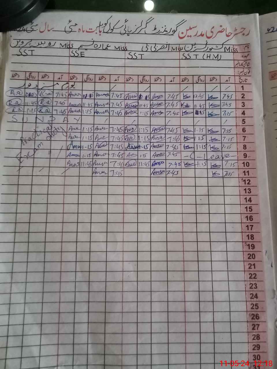 | 35**** | Ro**** Pe**** | SST | Regular | 0 | 0 | 0 | 0 | 0 | 0 | 0 | 0 | 0 | Exam Duty |