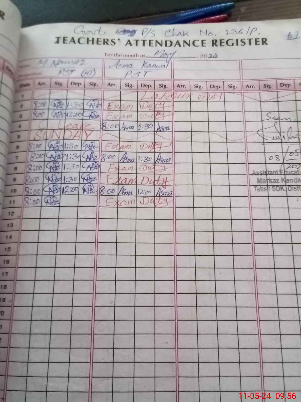 | 31**** | As**** Ka**** | 1 | 3 | 8 | 0 | 0 | 0 | 0 | 0 | 0 | 3 | Exam Duty | |