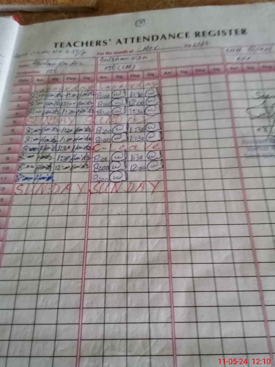 | CNIC | Full Name | Designation | R/C | Absence During Last Calender Month |