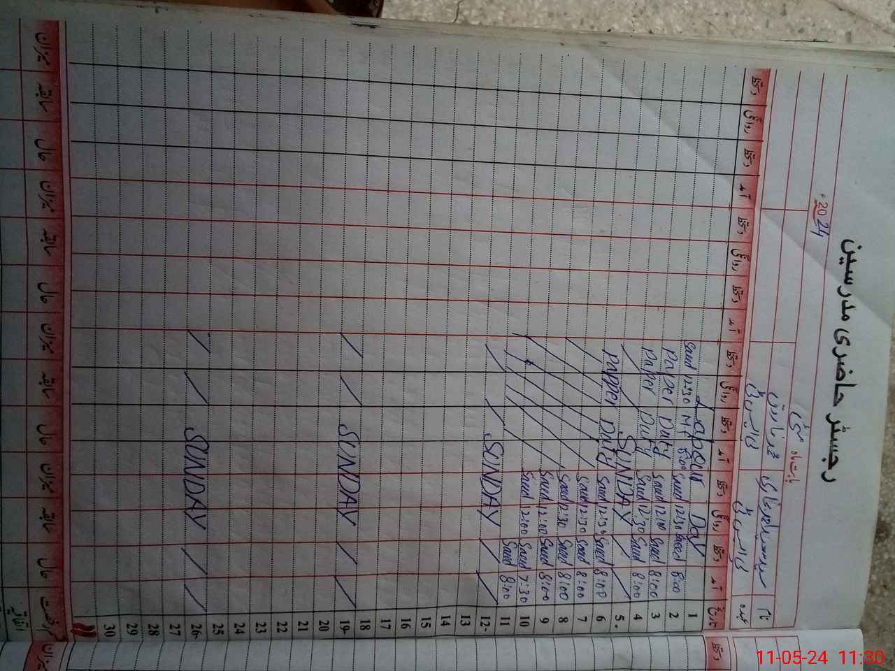 | CNIC | Full Name | Designation | R/C | Absence During Last Calender Month |