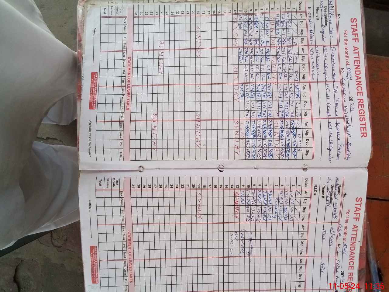 | CNIC | Full Name | Designation | R/C | Absence During Last Calender Month |
