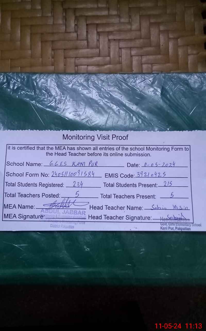| EMIS Code: 39210425 | Name of School: GGES KANI PUR | |||