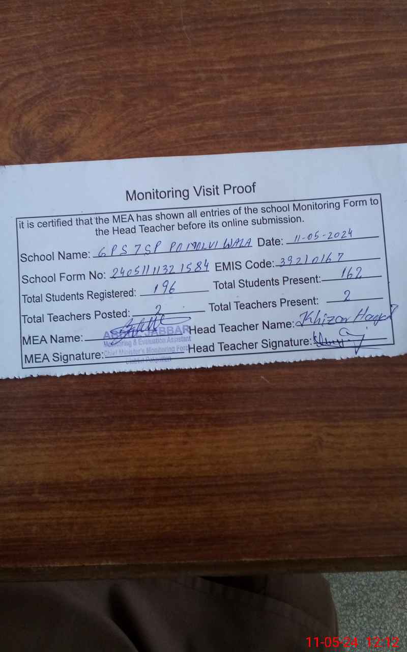 | EMIS Code: 39210167 | Name of School: GPS 7 SP PO MOLVI WALA PAKPATTAN | |||