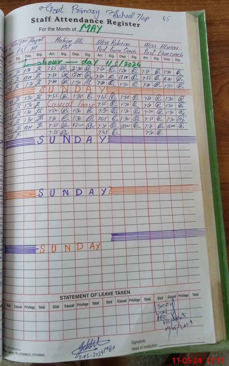 | Attendance Register | Head Teacher | MEA with School | Visit Proof |