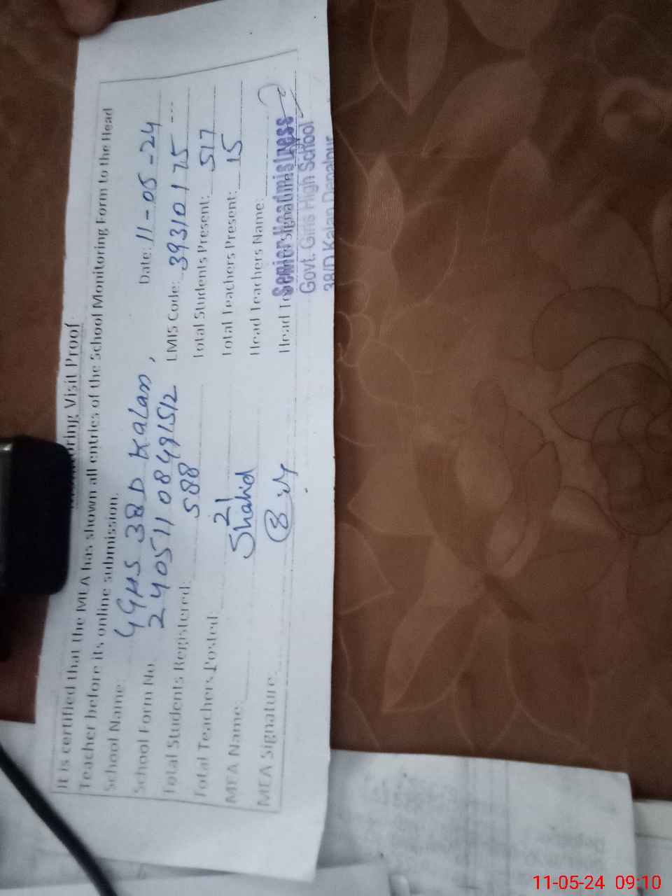 | EMIS Code: 39310175 | Name of School: GGHS 38 D KALAN | |||