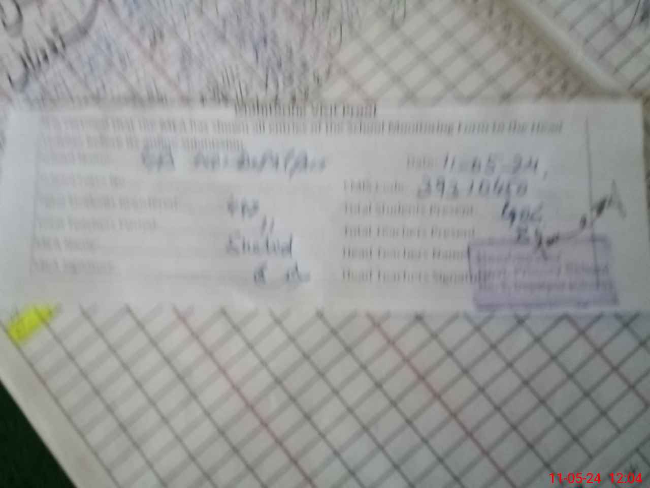 | Monitoring Date: 11-05-2024 | Start Time: 11-05-2024 11:52 AM | End Time: 11-05-2024 12:04 PM | Name of MEA: SH**** YO**** | |