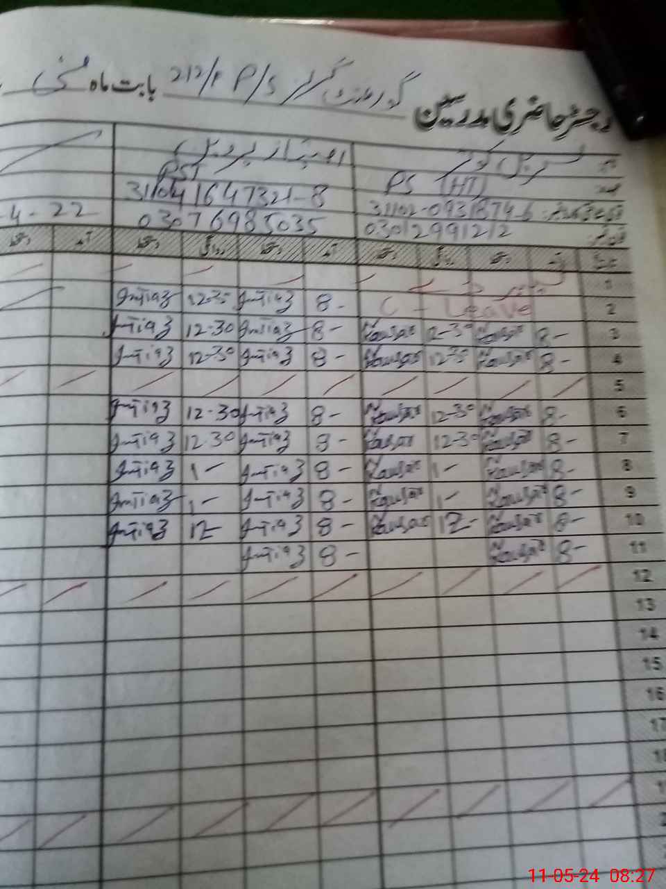 | CNIC | Full Name | Designation | R/C | Absence During Last Calender Month |