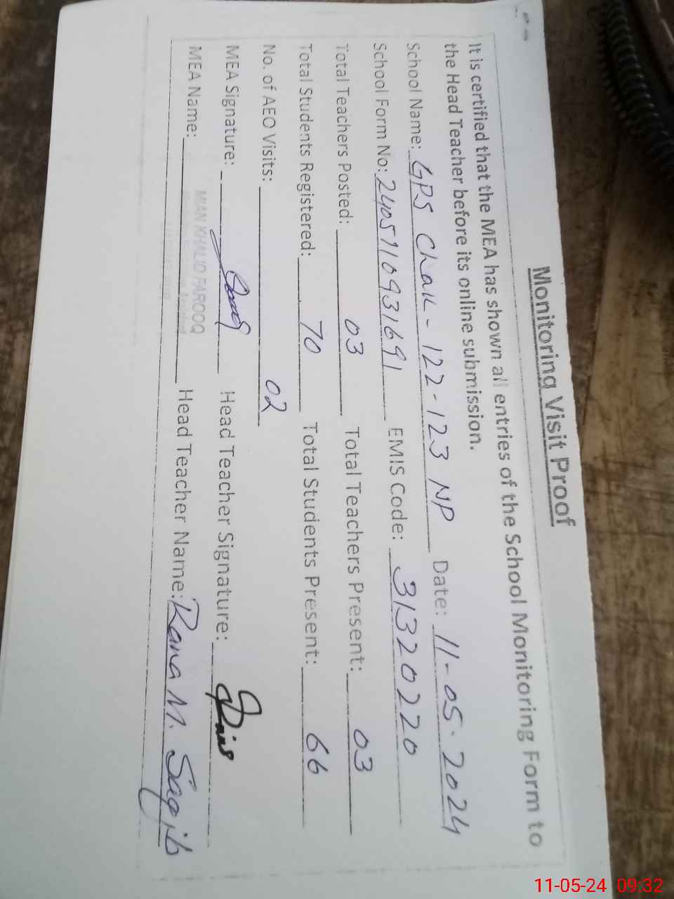 | EMIS Code: 31320220 | Name of School: GPS CHAK 122-123 NP | |||
