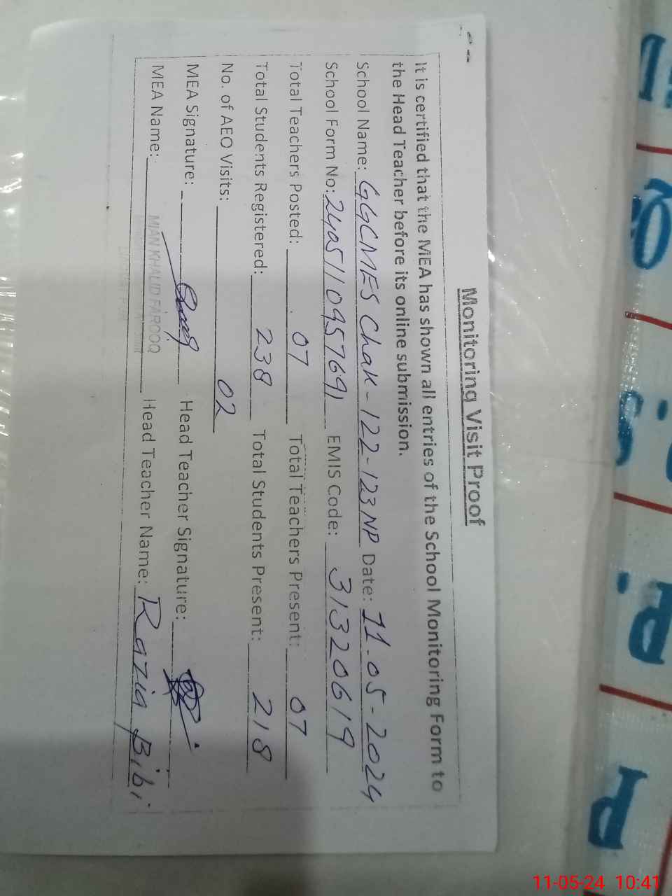 | EMIS Code: 31320619 | Name of School: GGCMES CHAK 122-123/NP | |||