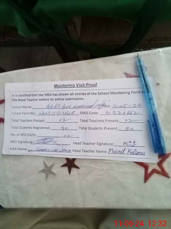| EMIS Code: 31320662 | Name of School: GGPS GUL MUHAMMAD LANGHA | |||