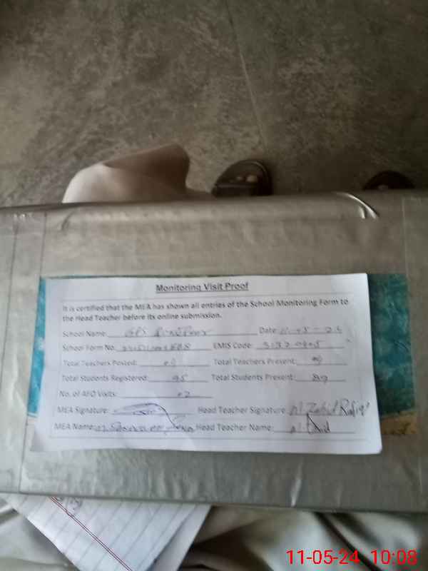 | Certified that this School was Inspected by the Undersigned MEA/DMO Today and the Information Stated Above is as Per Record. | |||||