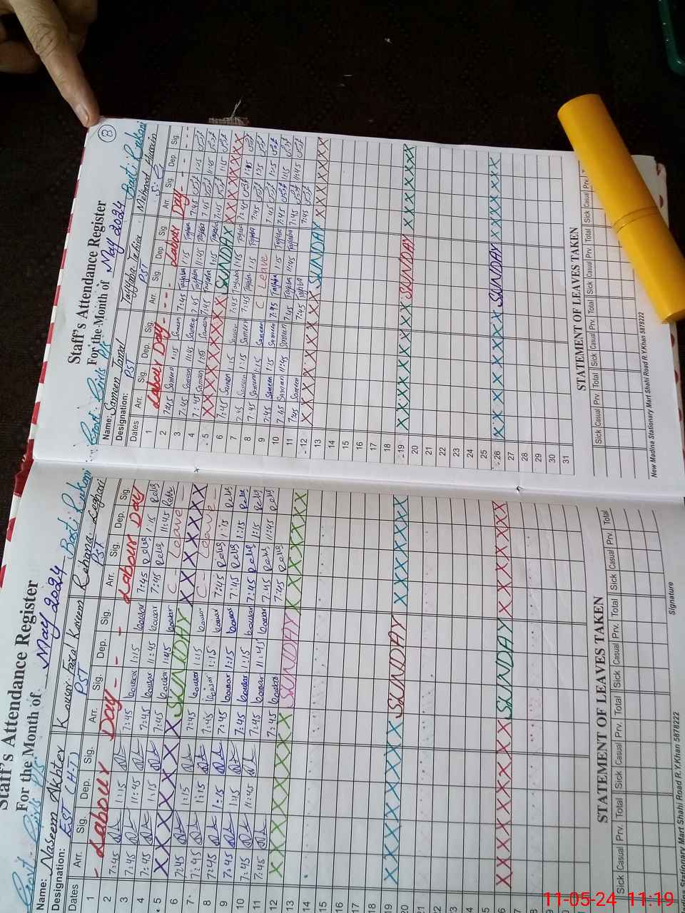 | Leave | Duty | Absent | Maternity | Medical | Ex- Pak |