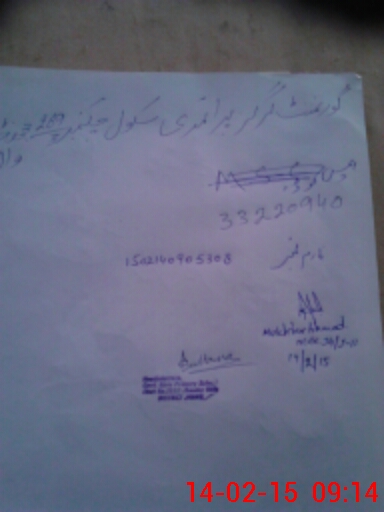 | Name: NA**** AN**** Designation: (School Headmaster's/Headmistress's) PST/ Phone/Cell Number: 03**** |