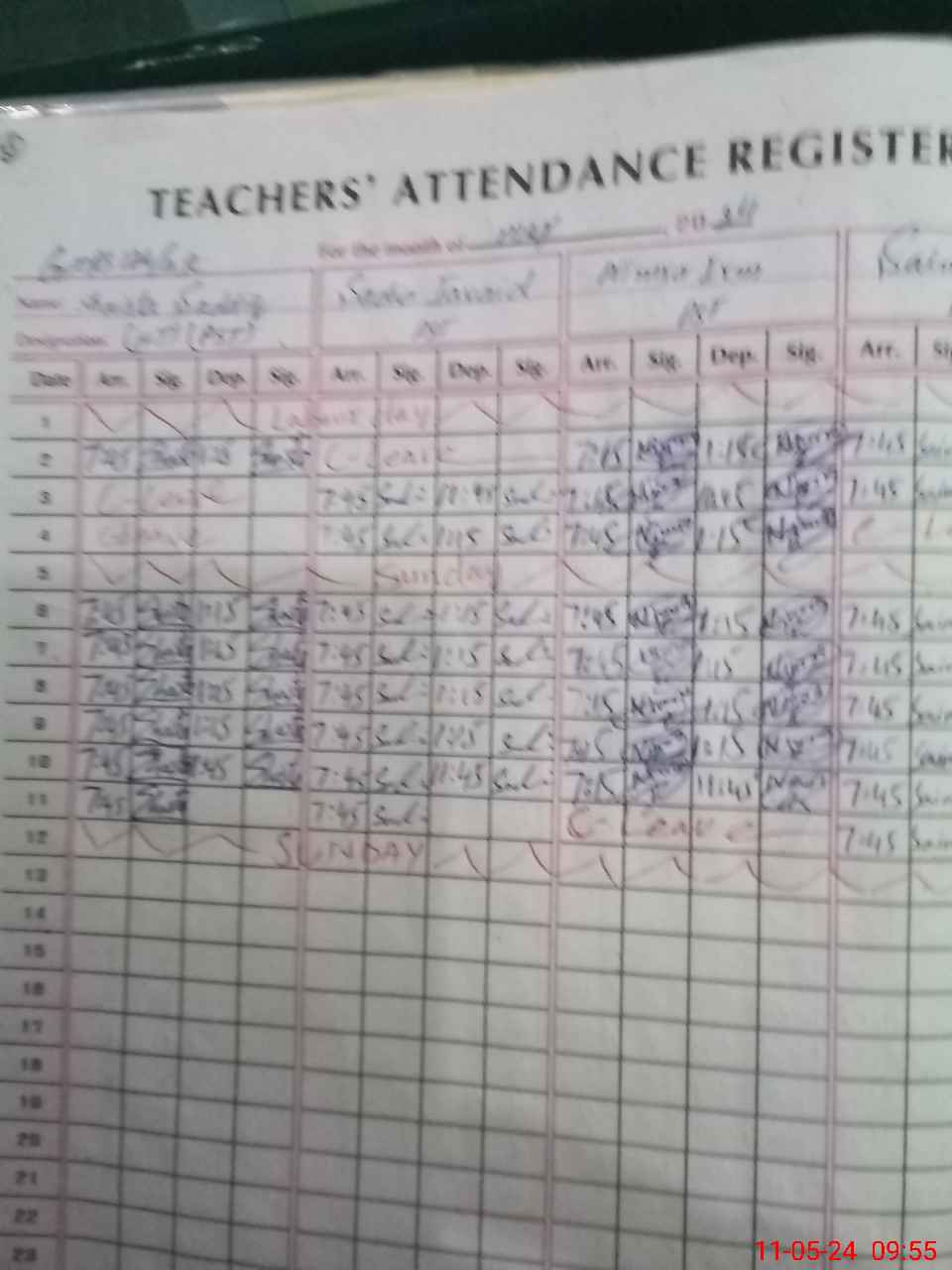 | CNIC | Full Name | Designation | R/C | Absence During Last Calender Month |