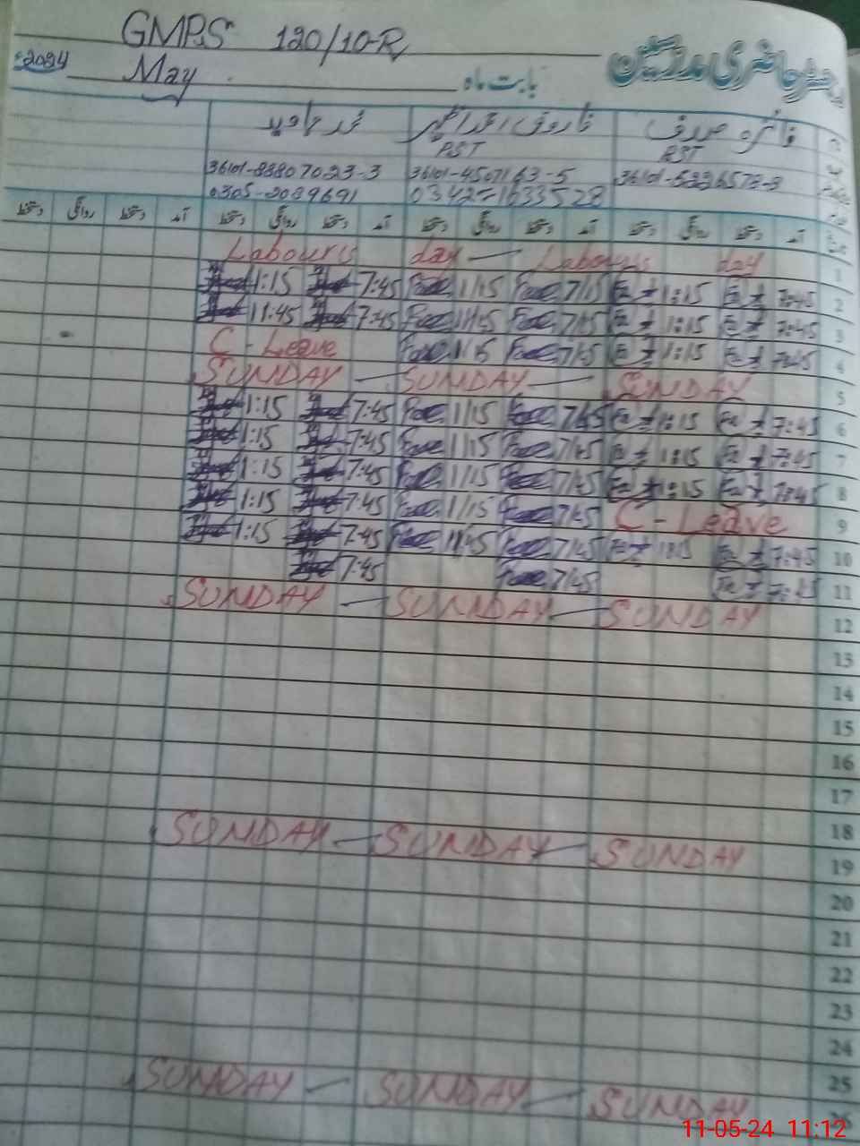 | Leave | Duty | Absent | Maternity | Medical | Ex- Pak |