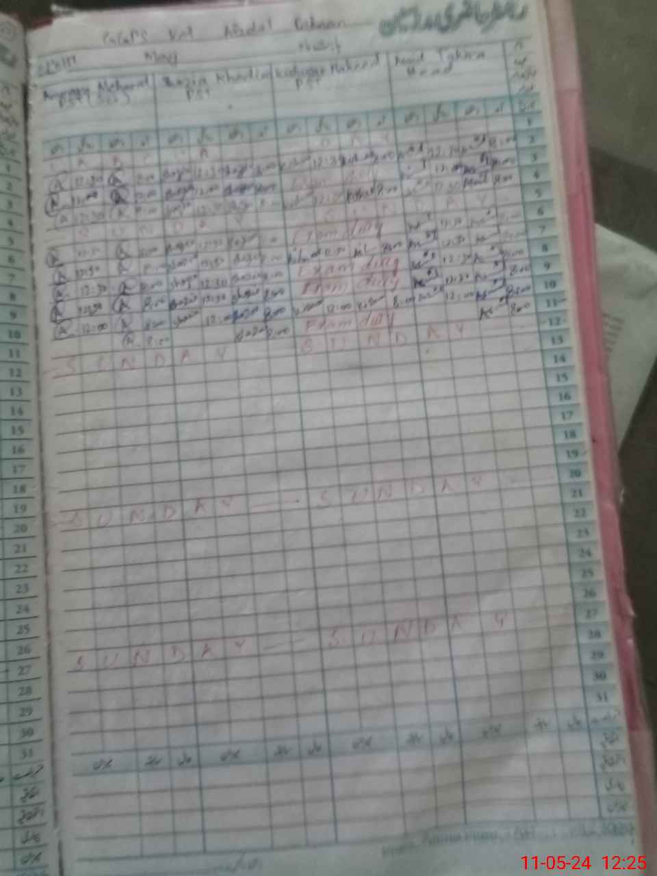 | 35**** | Ki**** Na**** | PST | Regular | 0 | 5 | 0 | 0 | 0 | 0 | 0 | 0 | 0 | Exam Duty |
