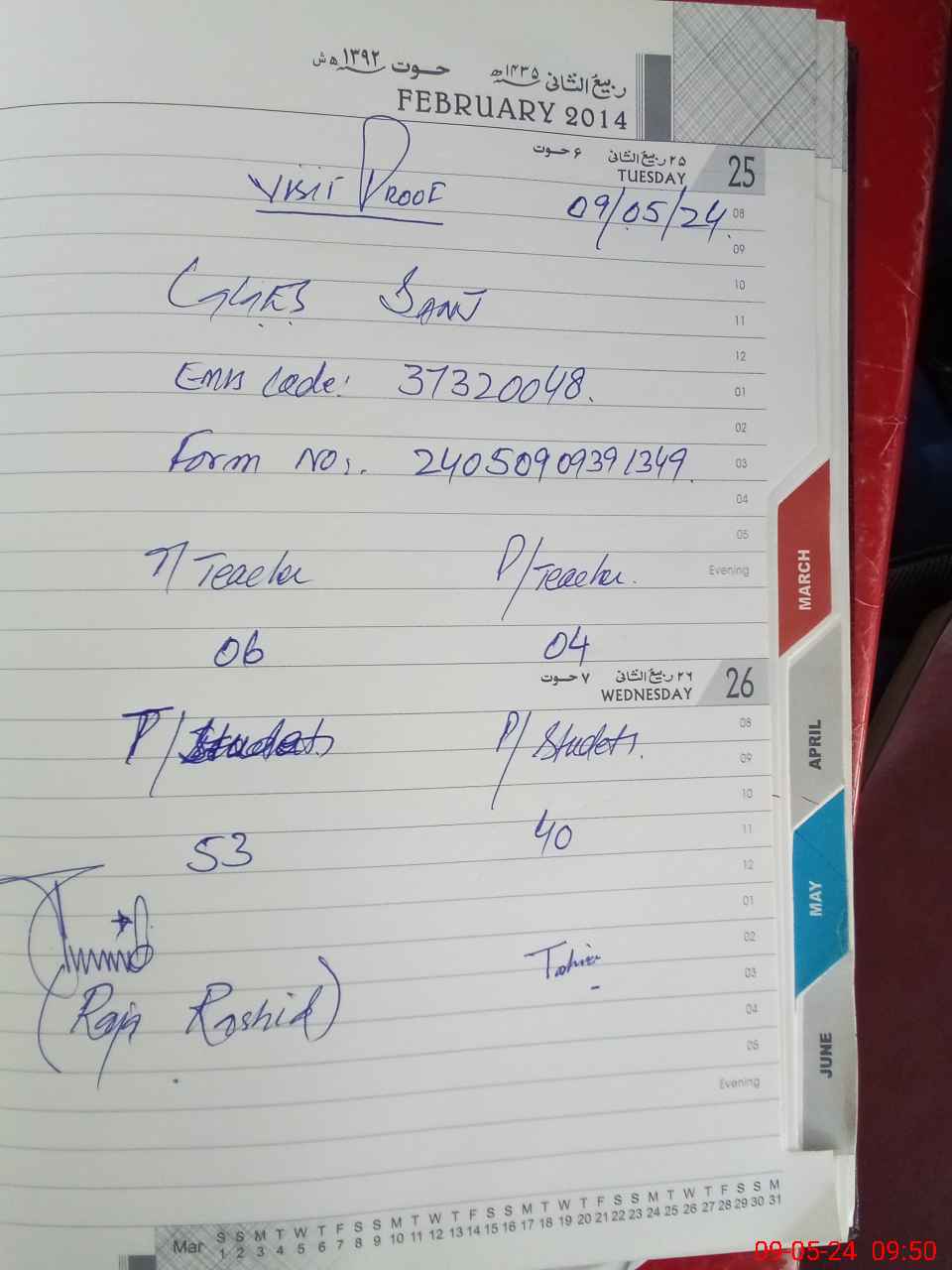 | Attendance Register | Head Teacher | MEA with School | Visit Proof |