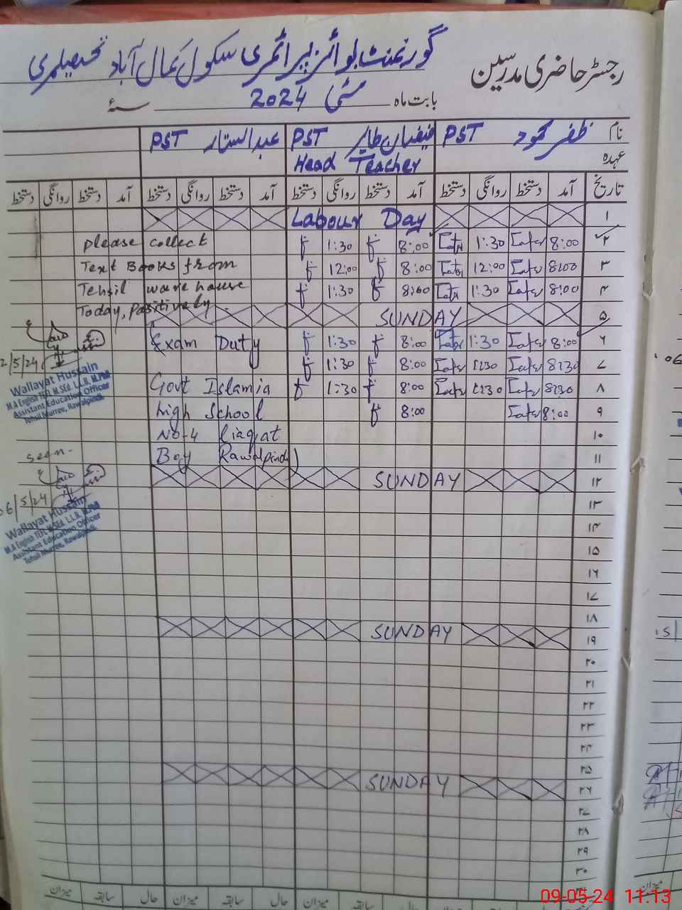 | 37**** | Ab**** Sa**** Ma**** | 2 | 2 | 0 | 0 | 0 | 0 | 0 | 0 | 0 | 0 | 0 | Exam Duty |