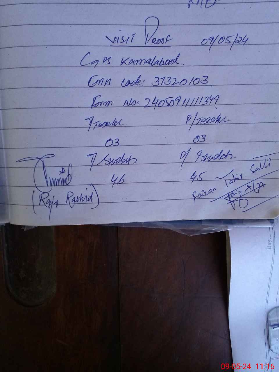 | Attendance Register | Head Teacher | MEA with School | Visit Proof |