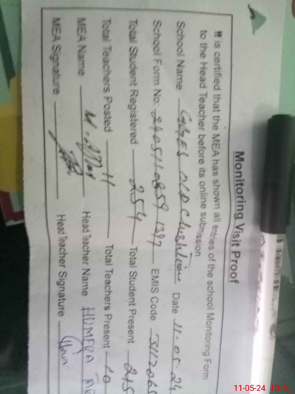 | Certified that this School was Inspected by the Undersigned MEA/DMO Today and the Information Stated Above is as Per Record. | |||||