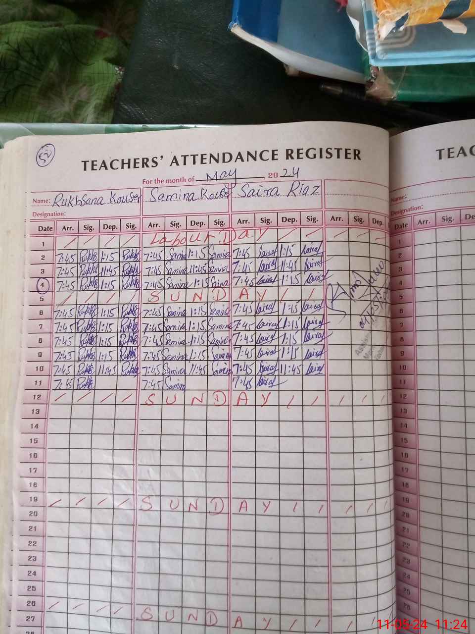 | CNIC | Full Name | Designation | R/C | Absence During Last Calender Month |