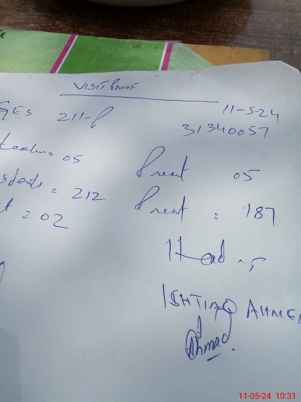 | Attendance Register | Head Teacher | MEA with School | Visit Proof |