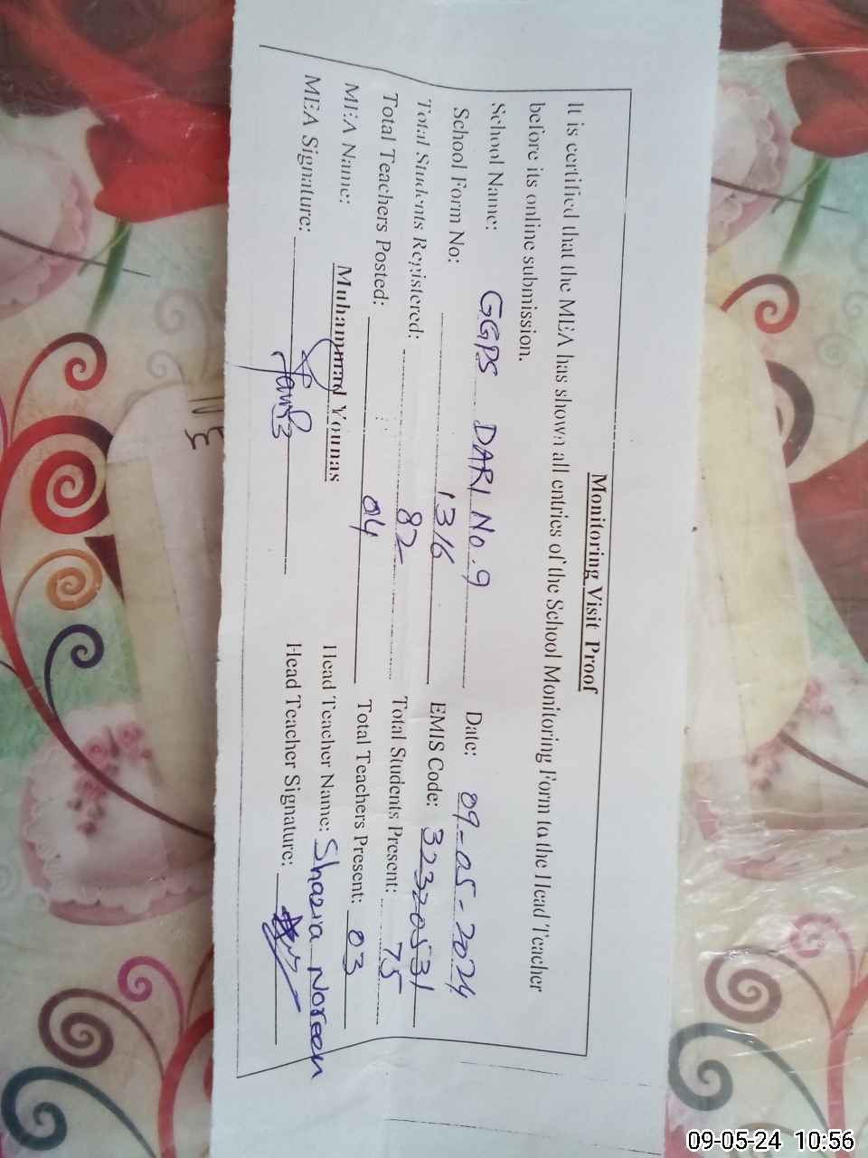 | EMIS Code: 32320531 | Name of School: GGPS DARI NO. 9 | |||